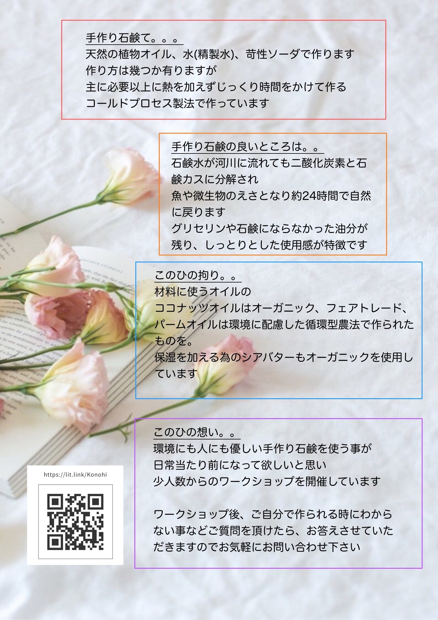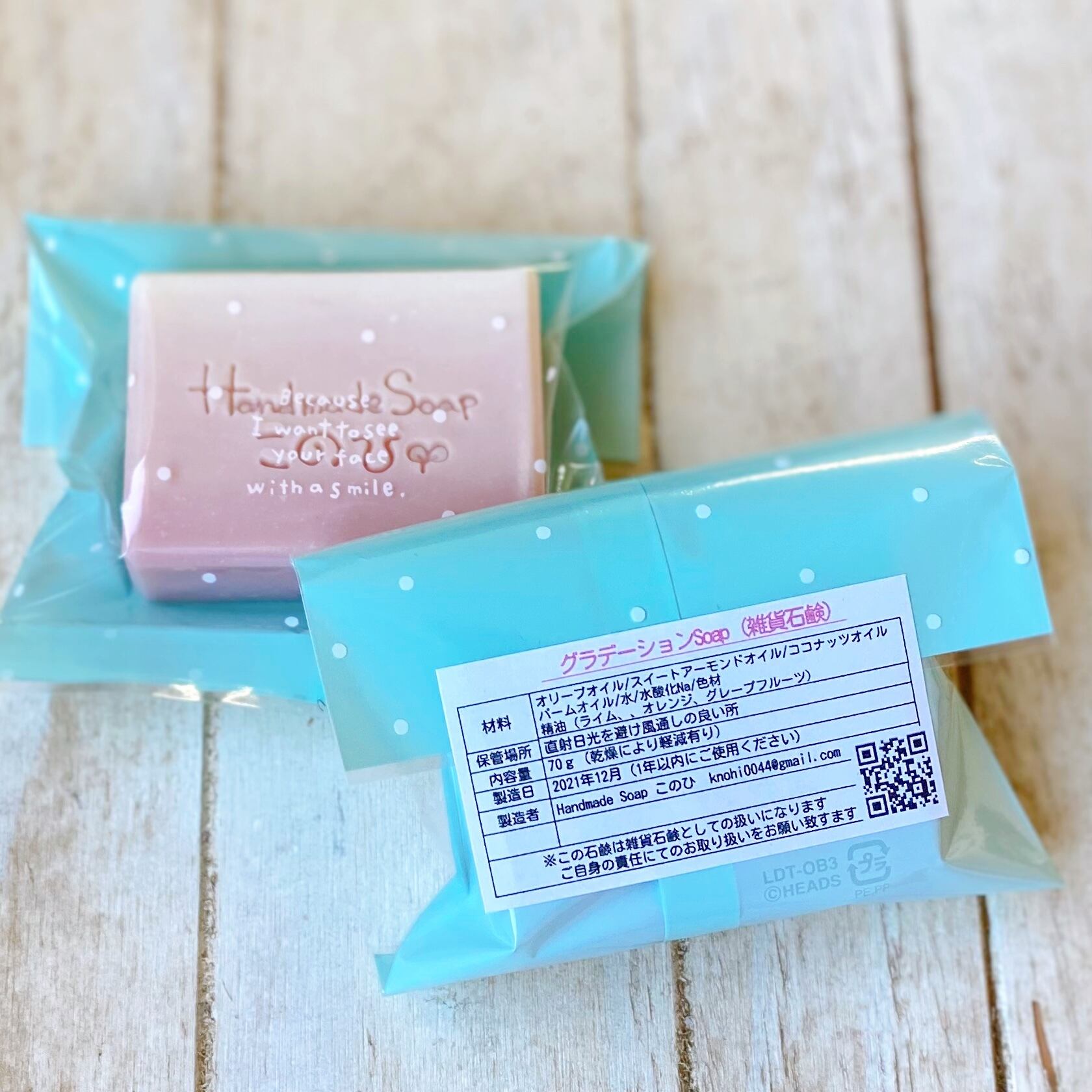 ◇スイートアーモンドオイル、オリーブオイル、ココナッツオイル、パームオイル、水、水酸化N a、色材(マイカ)